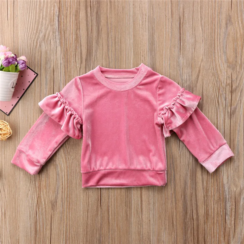 Clearance Automne hiver 2018 nouveaux enfants bébé fille velours à manches longues hauts volants sweat pull e