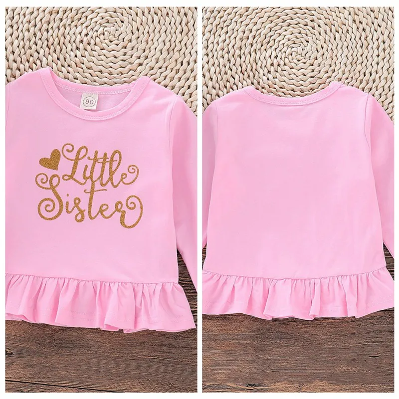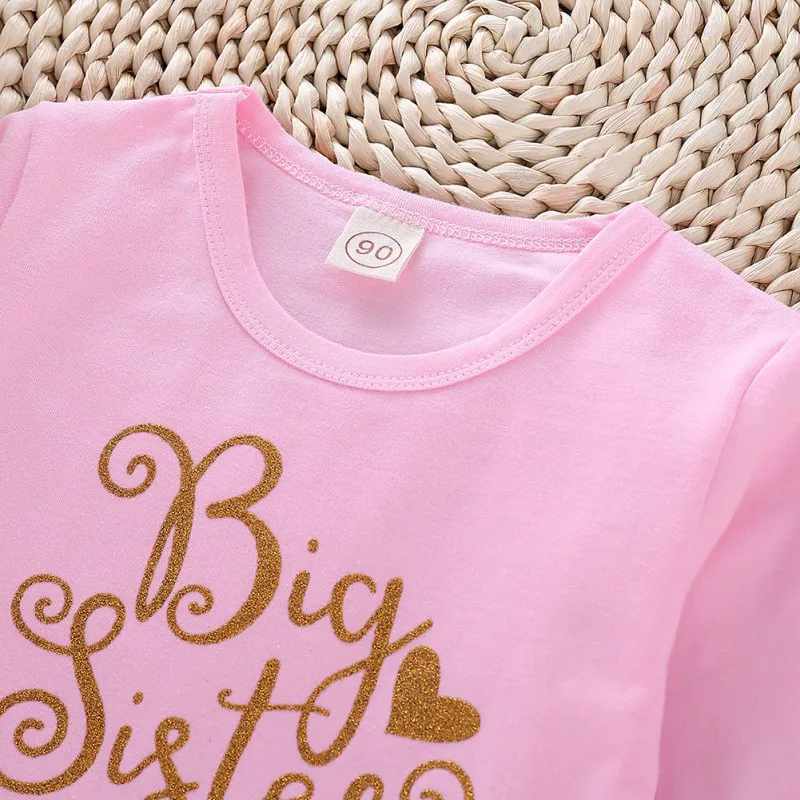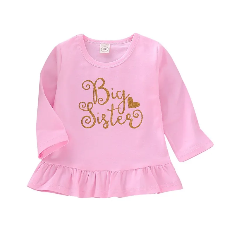 Clearance Bébé fille vêtements automne T-shirt coton lettres imprimer à manches longues T-shirt soeur famille
