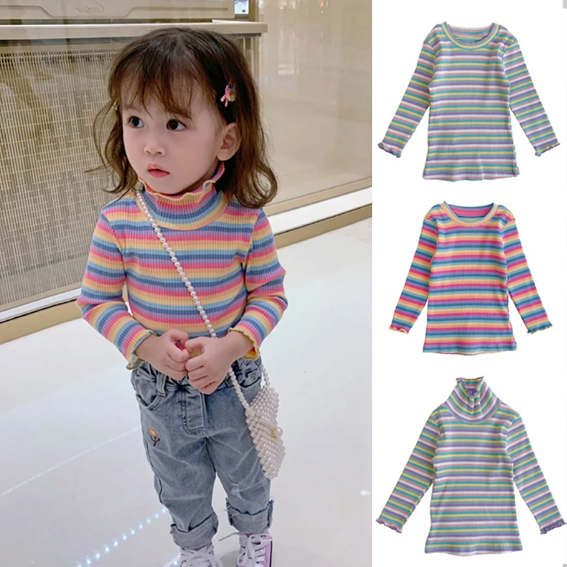 0 Response to "Discount Enfants T-Shirts bébé fille vêtements mode rayure imprimé coton à manches longues T-Shirts arc-en-c"