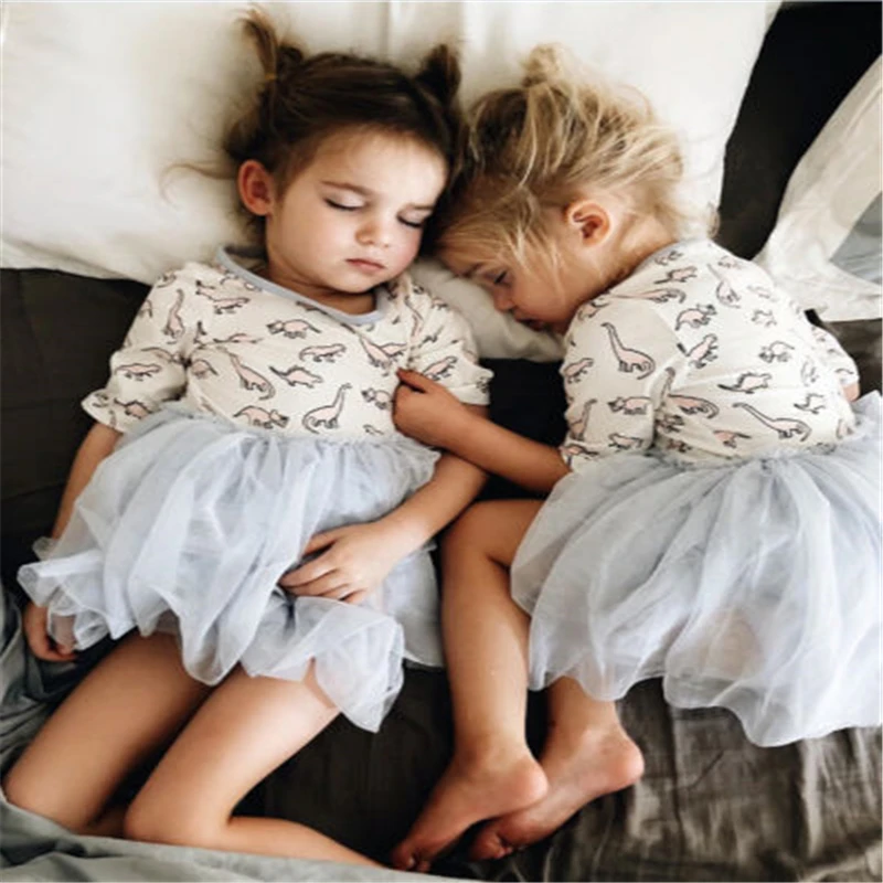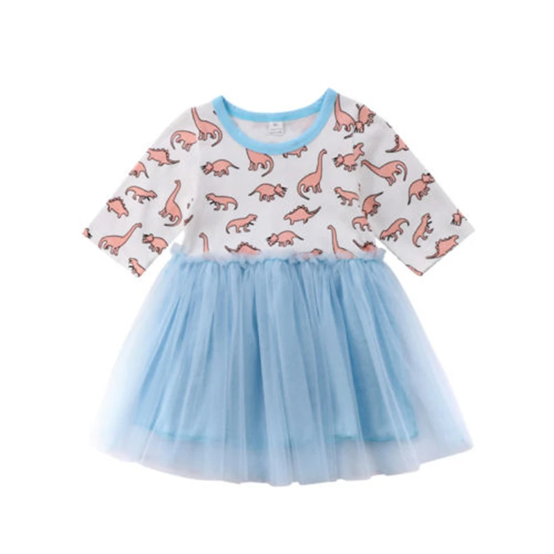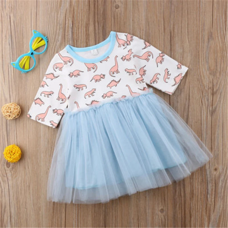 Offer 2019 nouveau été enfants bébé filles coton mignon dinosaure Tulle robe à manches longues hauts T-sh