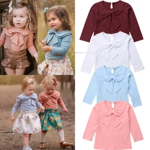 » On sale Pudcoco décontracté enfants bébé filles 1-5Y vêtements col Bowknot manches longues sommets Blouse