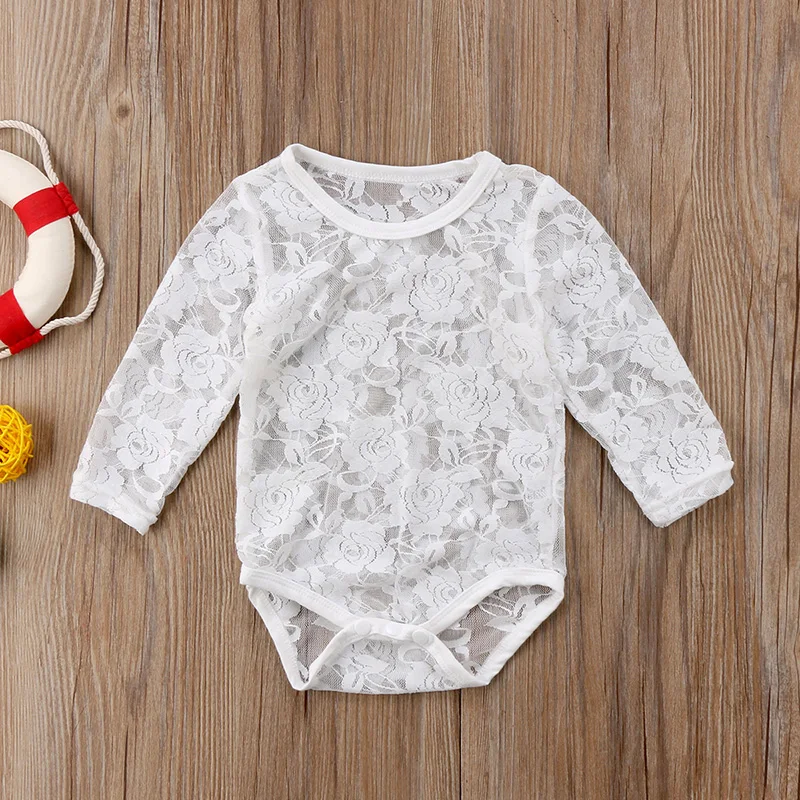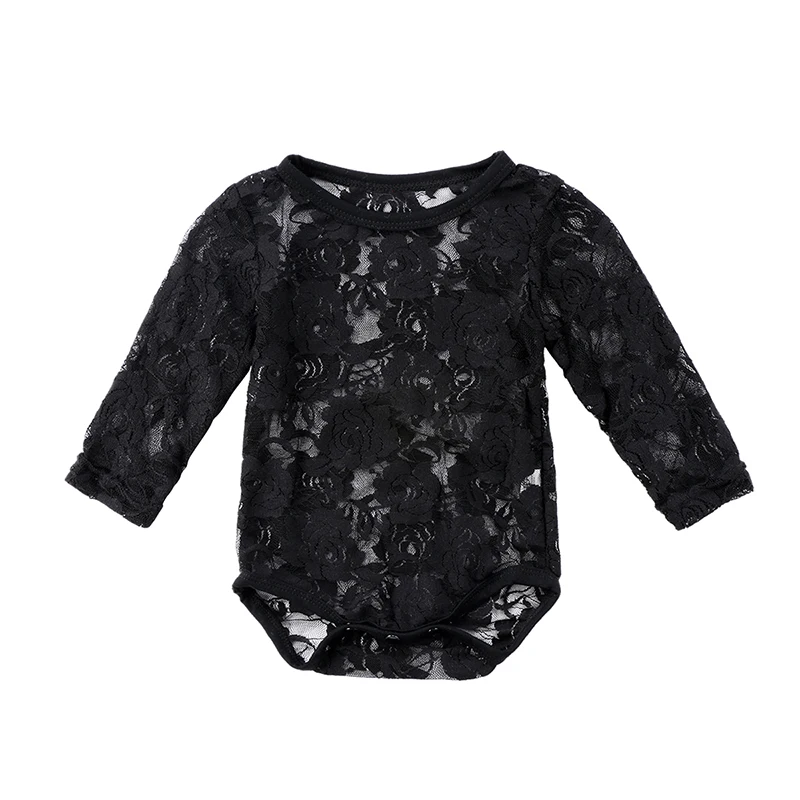 Voucher 0-18 M nouveau-né infantile bébé fille dentelle body à manches longues solide blanc/noir Floral Sun